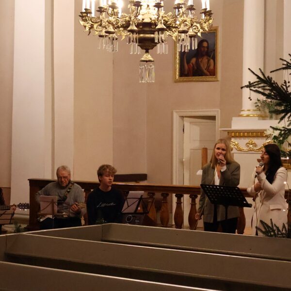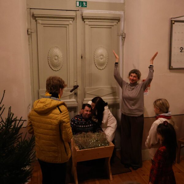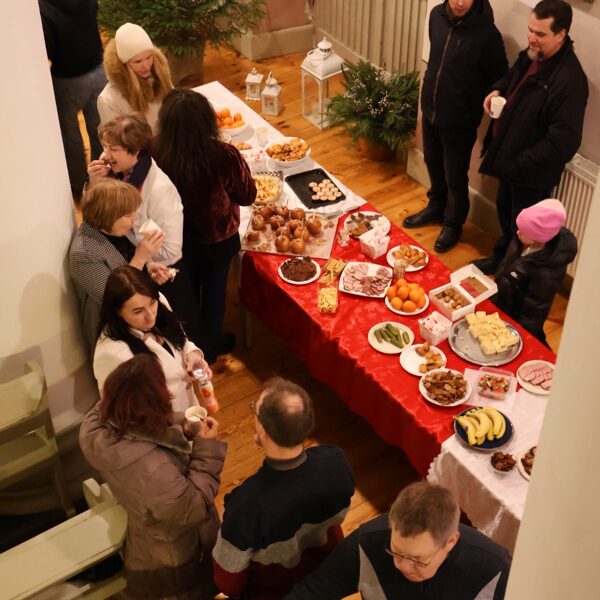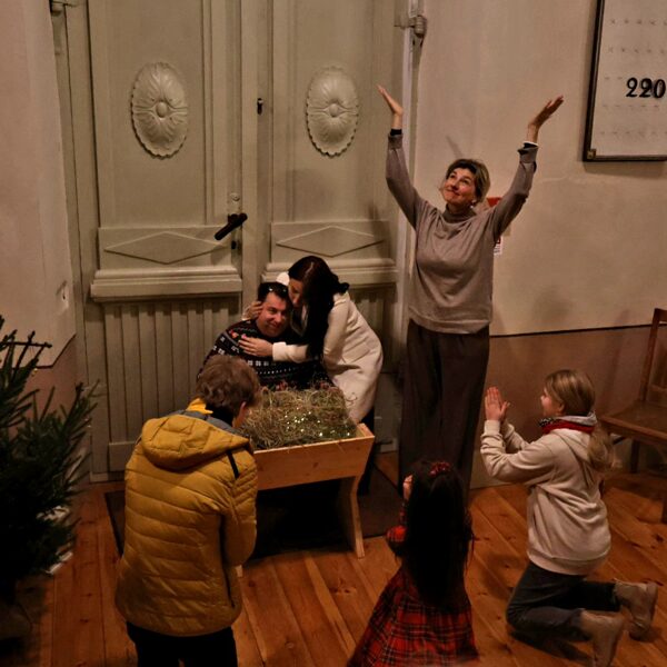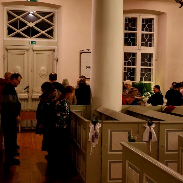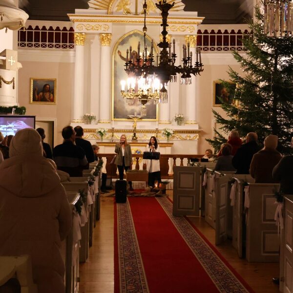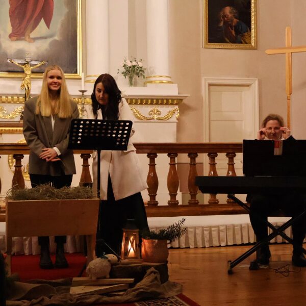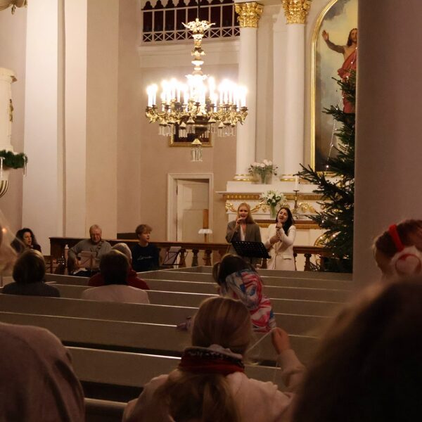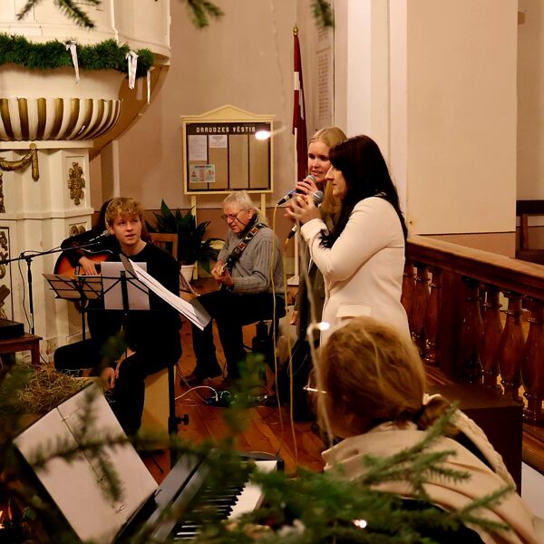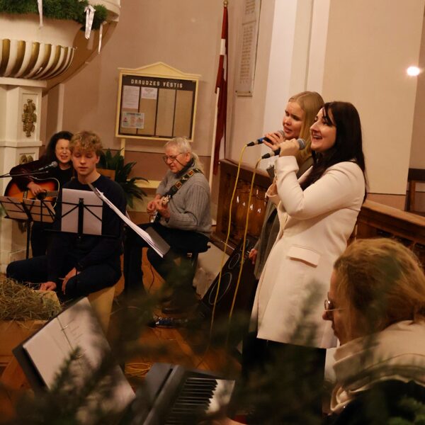 Ar dziesmām un dzeju, smalko kafiju un pīrāgiem, un karameļu āboliem un ar mācītāja jokiem. Ar sarunām. Ar bērnu čalām un mazajiem dipu- dapu! Ar sagatavotiem stāstiem un improvizētām izrādēm.