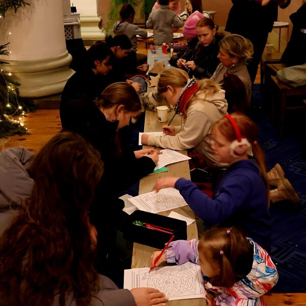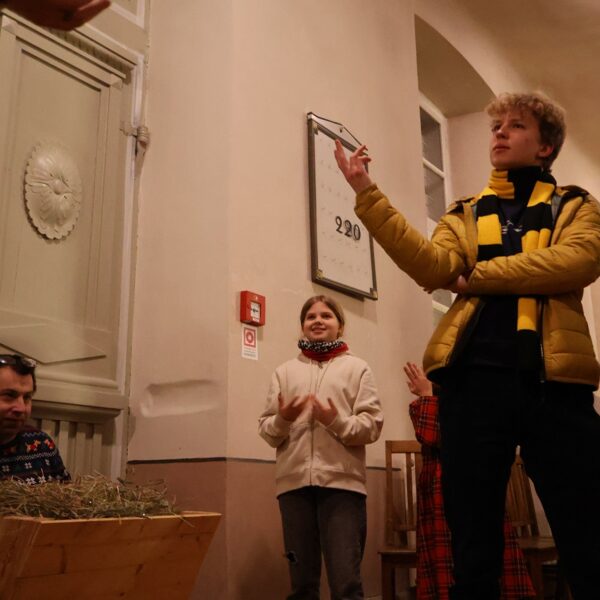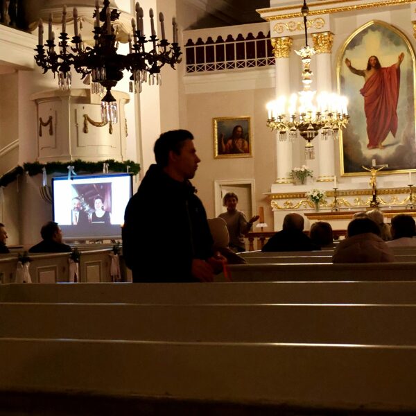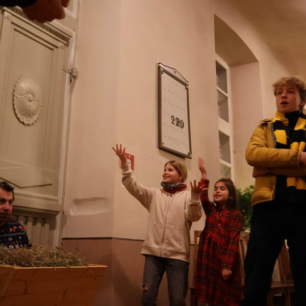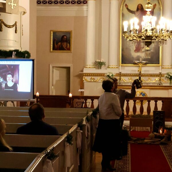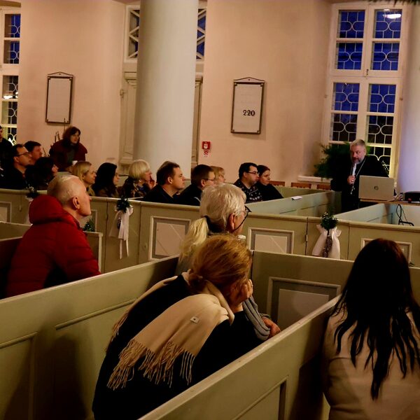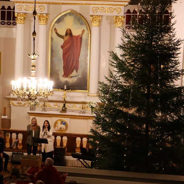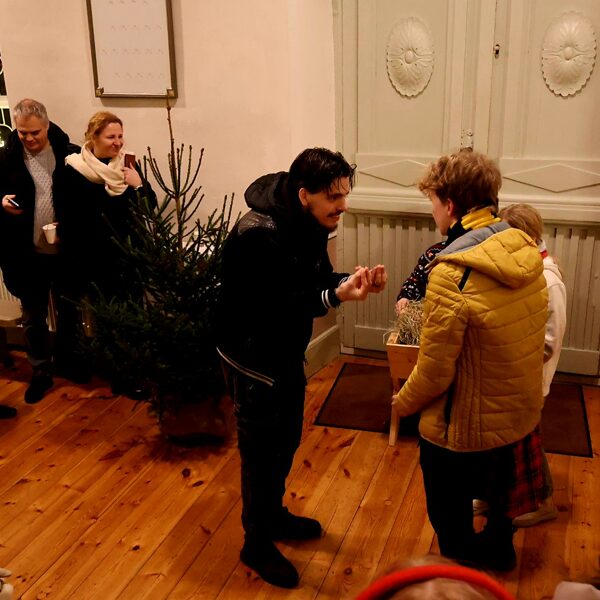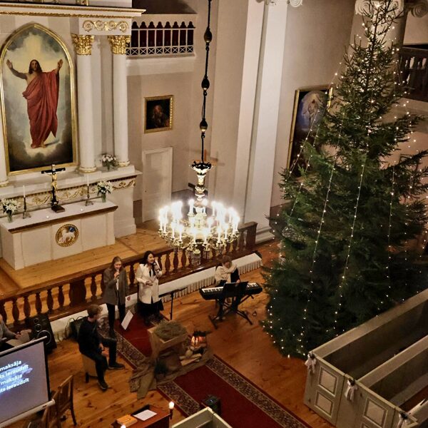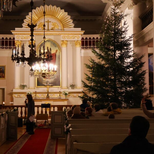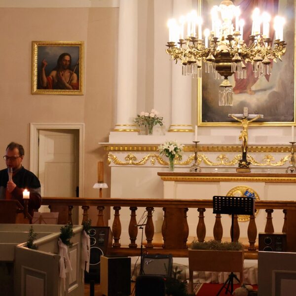 Ar dziesmām un dzeju, smalko kafiju un pīrāgiem, un karameļu āboliem un ar mācītāja jokiem. Ar sarunām. Ar bērnu čalām un mazajiem dipu- dapu! Ar sagatavotiem stāstiem un improvizētām izrādēm.